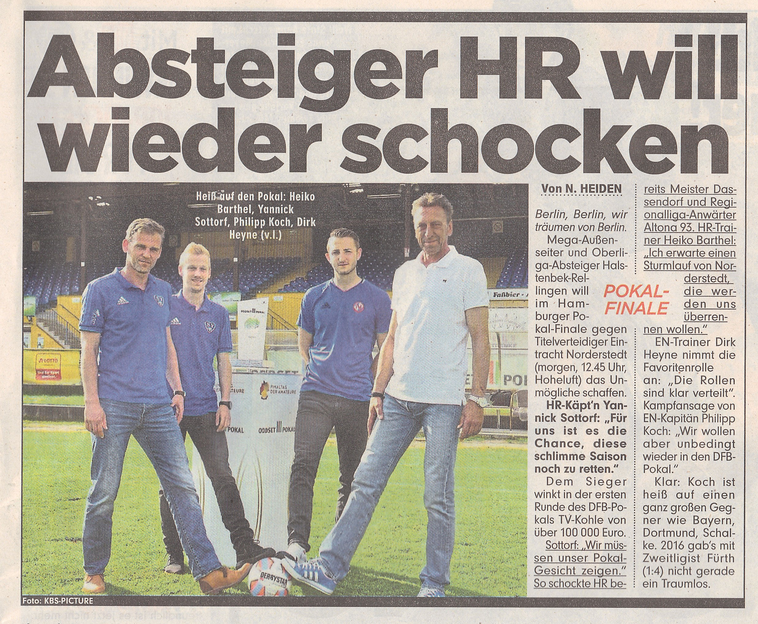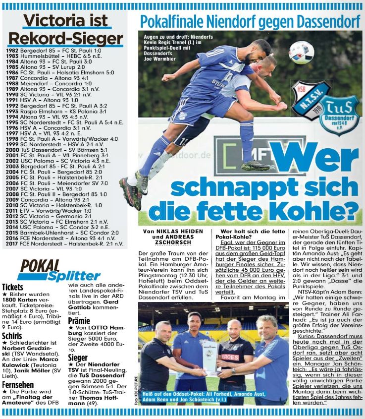 18.05.2018 (Artikel – Print): Pokalfinale! Wer schnappt sich die fette Kohle?