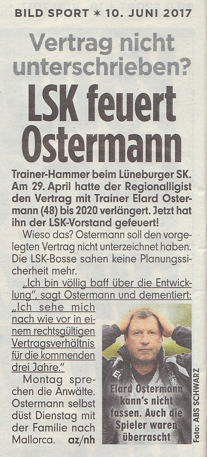 10.06.2017 (Artikel – Print): Vertrag nicht unterschrieben? LSK feuert Ostermann