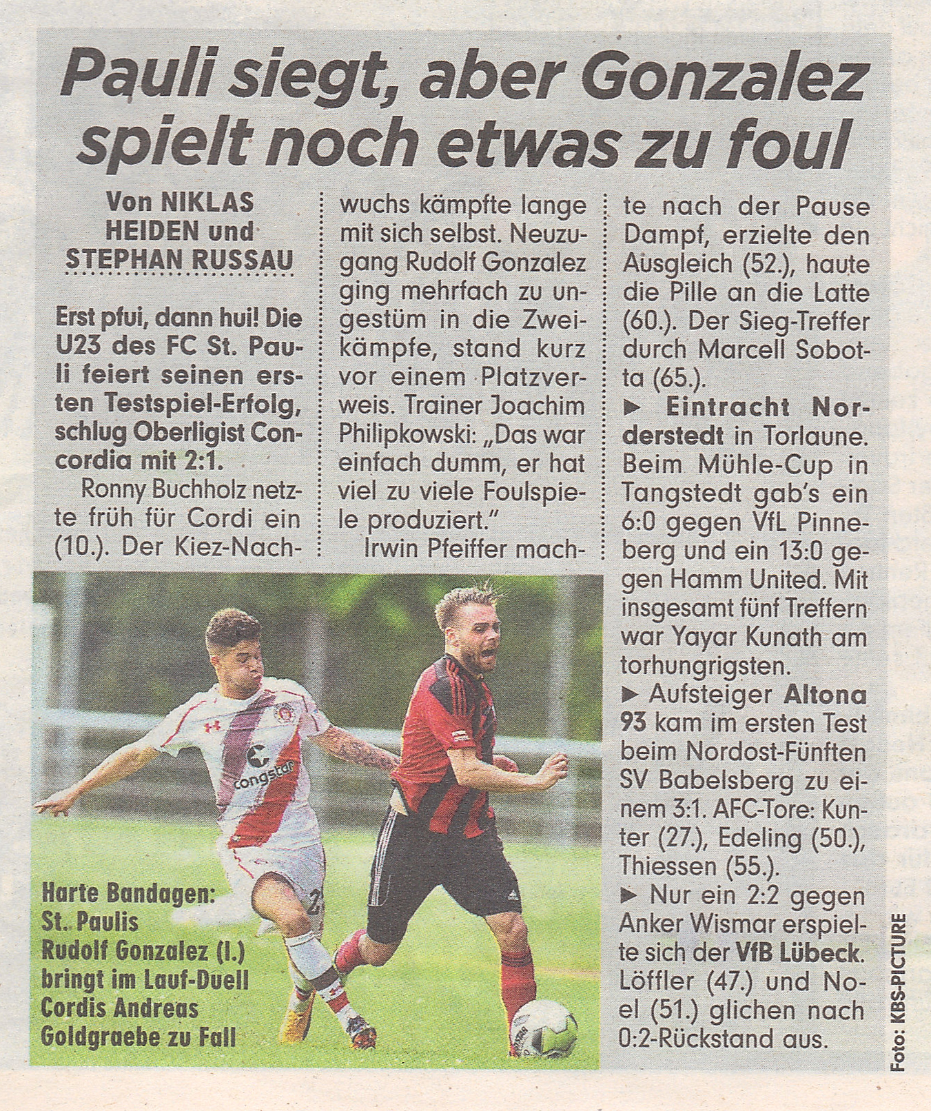 03.07.2017 (Artikel – Print): Pauli siegt, aber Gonzalez spielt noch etwas zu foul