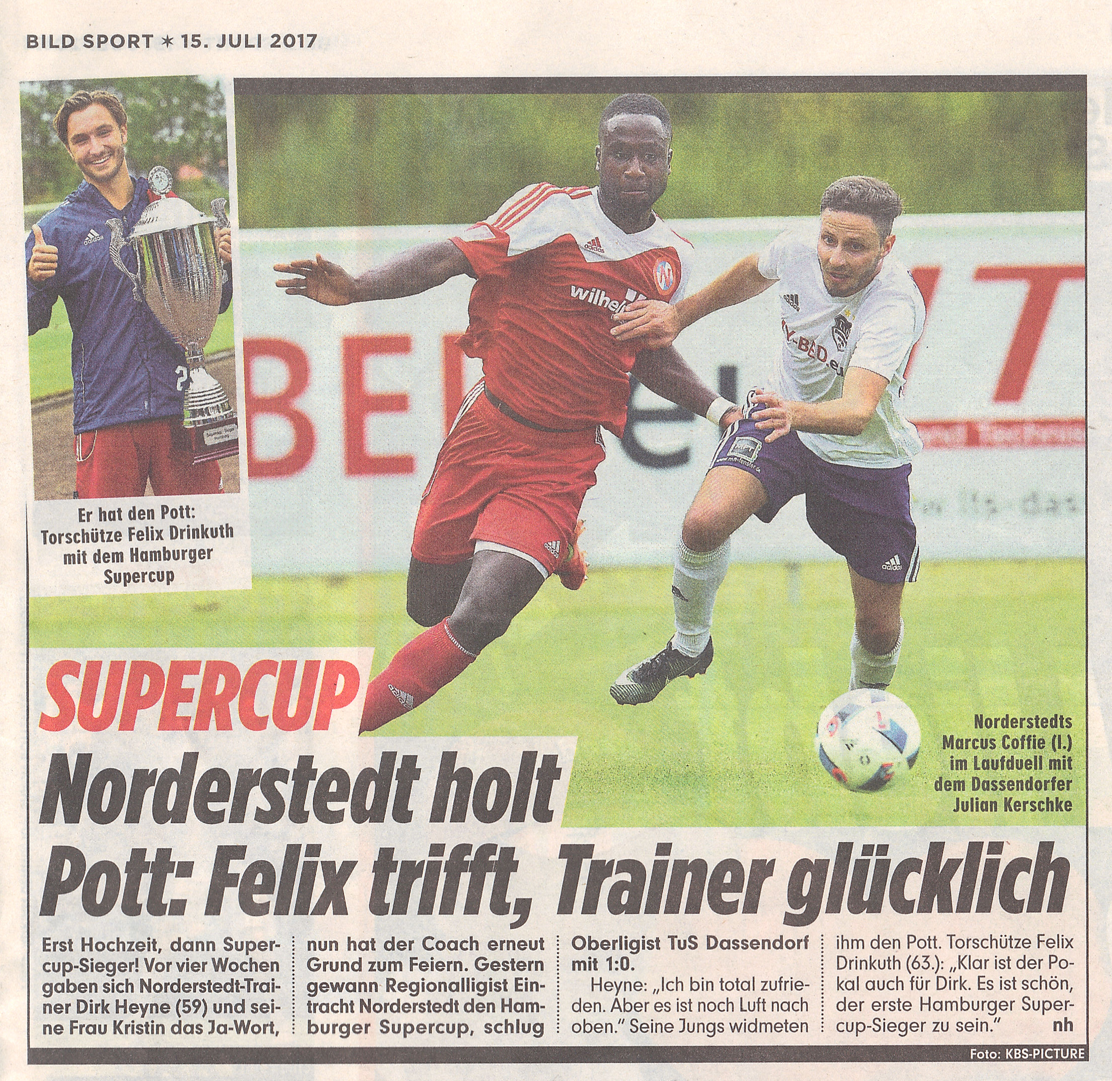 15.07.2017 (Artikel – Print): Supercup! Norderstedt holt Pott: Felix trifft, Trainer glücklich