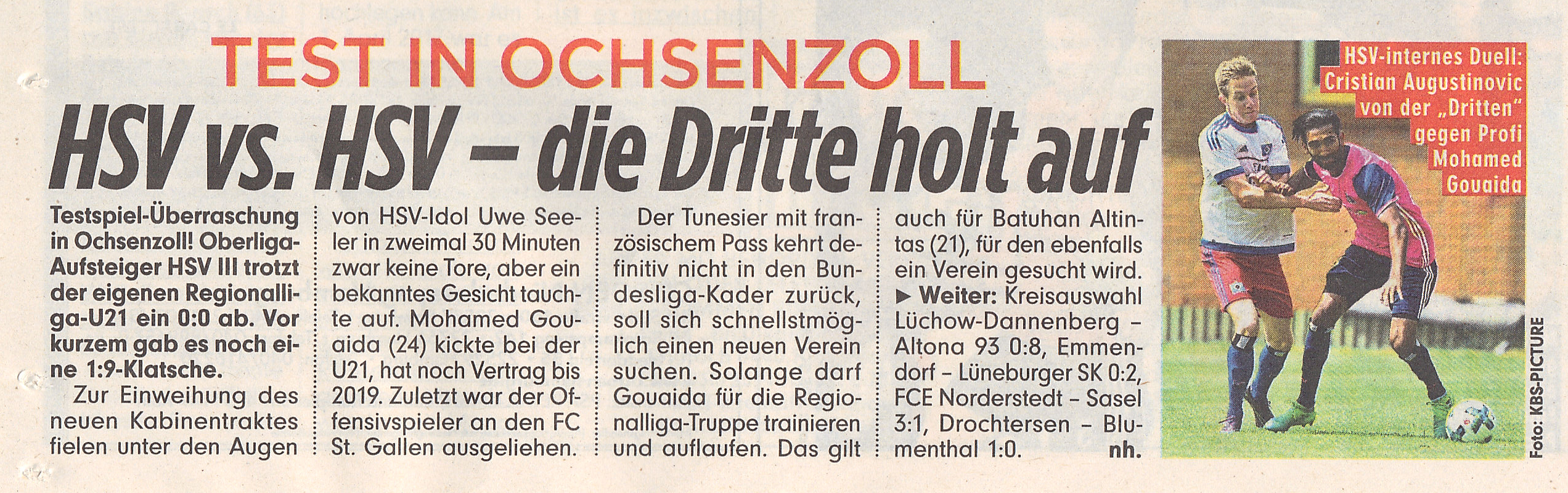 17.07.2017 (Artikel – Print): Test in Ochsenzoll: HSV vs. HSV – die Dritte holt auf
