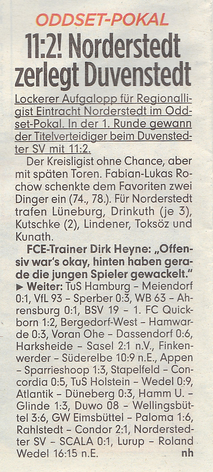 22.07.2017 (Artikel – Print): 11:2! Norderstedt zerlegt Duvenstedt