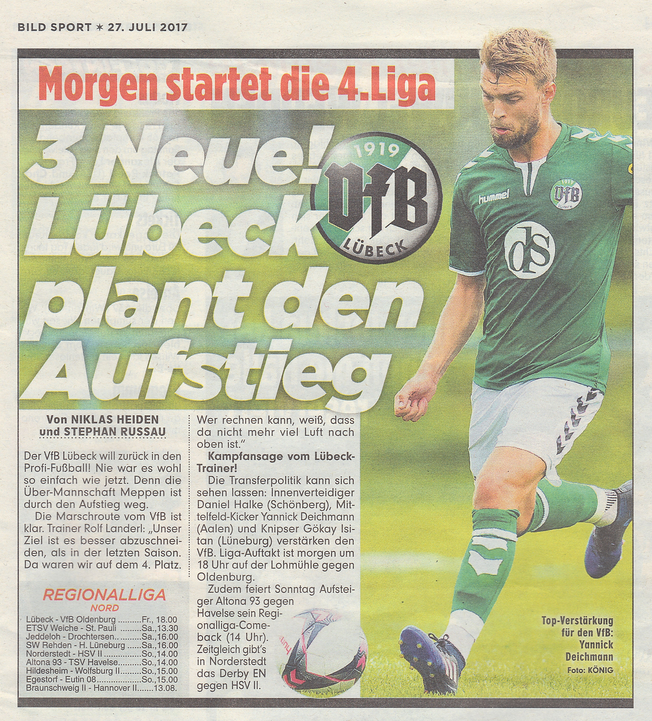 27.07.2017 (Artikel – Print): 3 Neue! Lübeck plant den Aufstieg