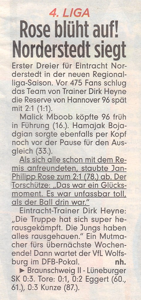 03.08.2017 (Artikel – Print): Rose blüht auf! Norderstedt siegt