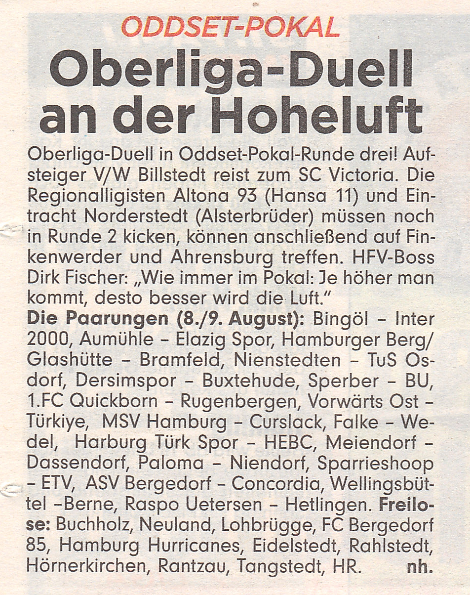 04.08.2017 (Artikel – Print): Oberliga-Duell an der Hoheluft