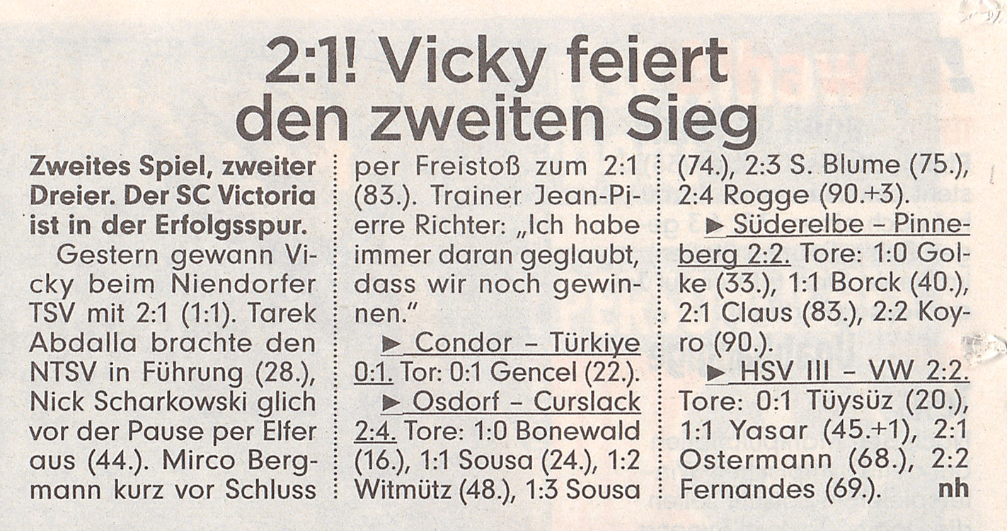 25.08.2018 (Artikel – Print): 2:3 gegen SC Victoria – beim VfL wird’s finster