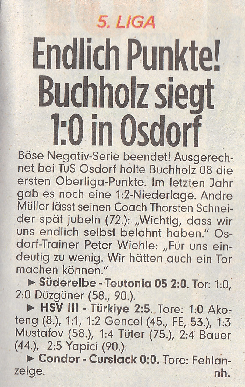 20.08.2017 (Artikel – Print): Endlich Punkte! Buchholz siegt 1:0 in Osdorf