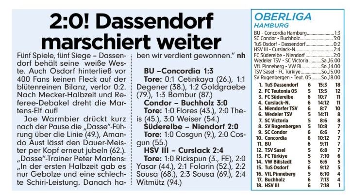 02.09.2017 (Artikel – Print): 2:0! Dassendorf marschiert weiter