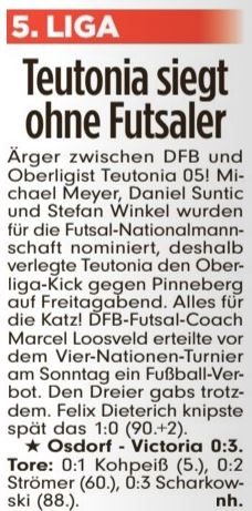 09.09.2017 (Artikel – Print): Teutonia siegt ohne Futsaler