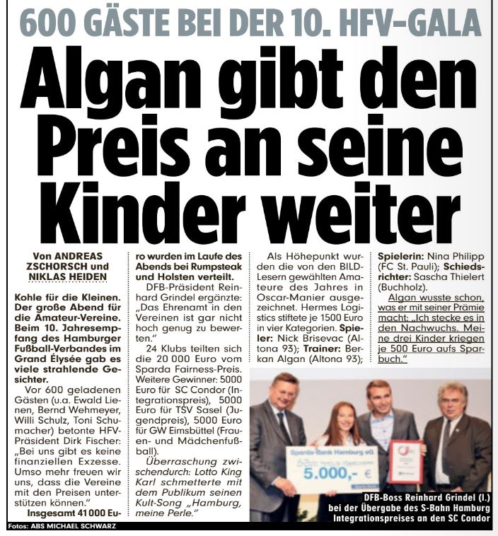 12.09.2017 (Artikel – Print): Algan gibt den Preis an seine Kinder weiter