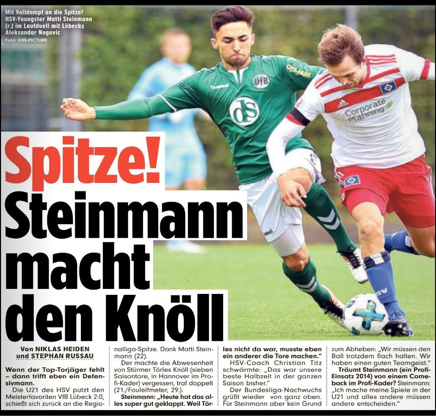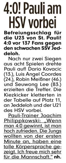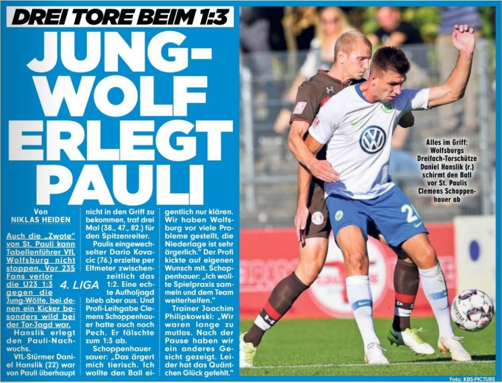 13.09.2018 (Artikel – Print): 4:0! Pauli am HSV vorbei