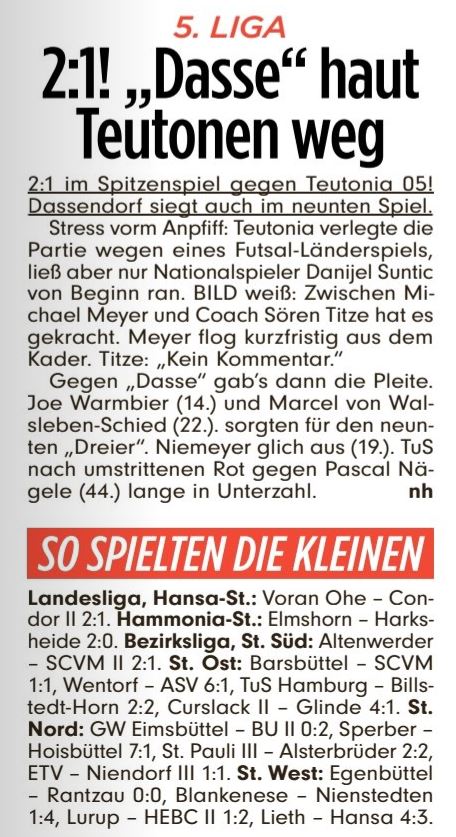08.10.2018 (Artikel – Print): Teutonia greift oben an, Dassendorf wie Bayern
