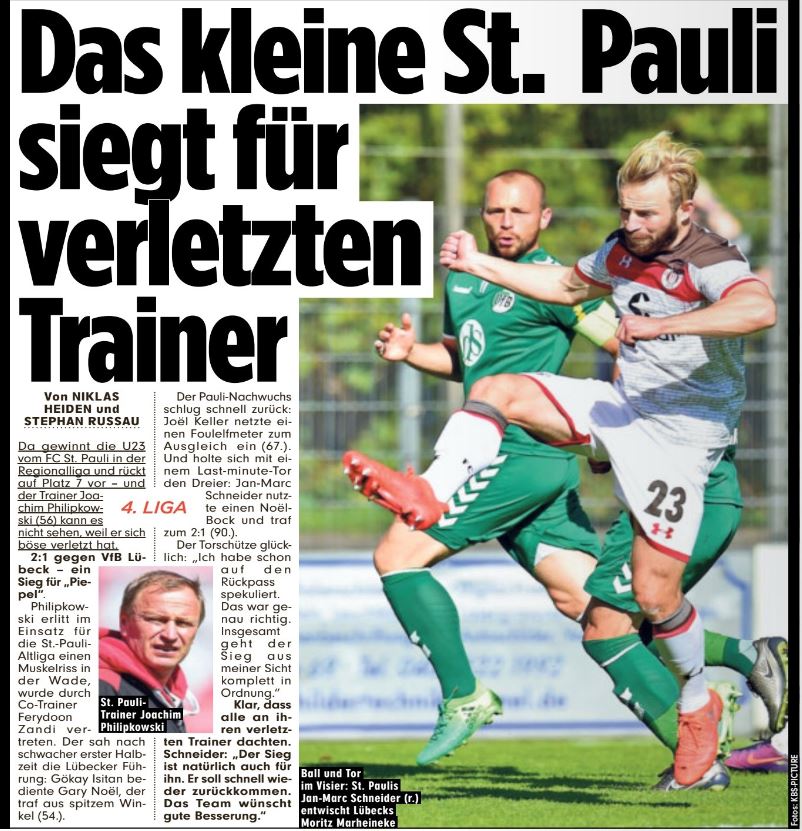 02.10.2017 (Artikel – Print): Das kleine St. Pauli siegt für verletzten Trainer
