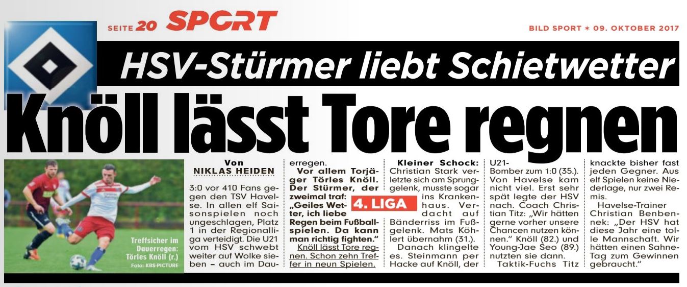 09.10.2017 (Artikel – Print): HSV-Stürmer liebt Schietwetter – Knöll lässt Tore regnen