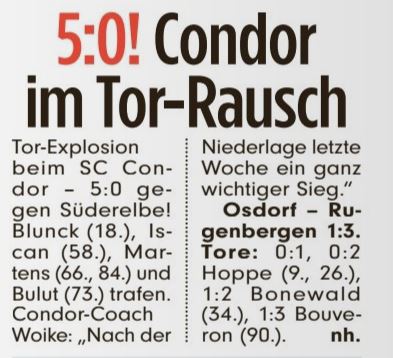 21.10.2017 (Artikel – Print): 5:0! Condor im Torrausch