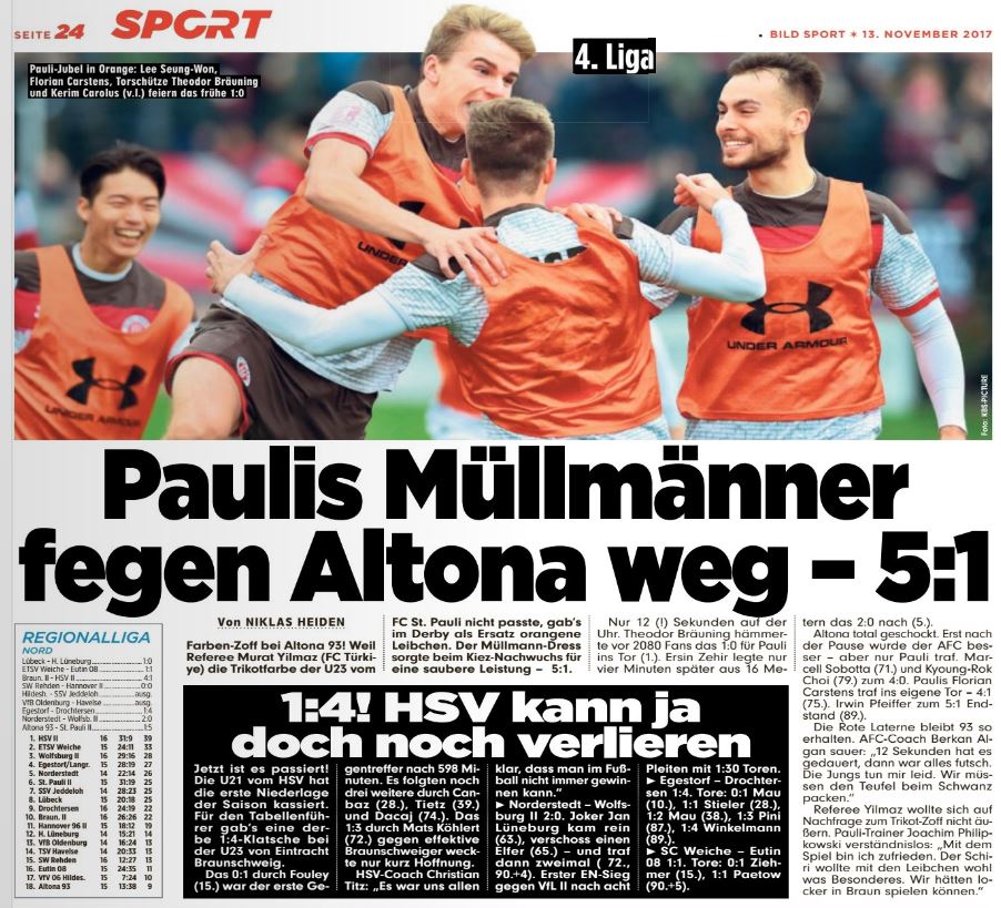 13.11.2017 (Artikel – Print): Paulis Müllmänner fegen Altona weg – 5:1