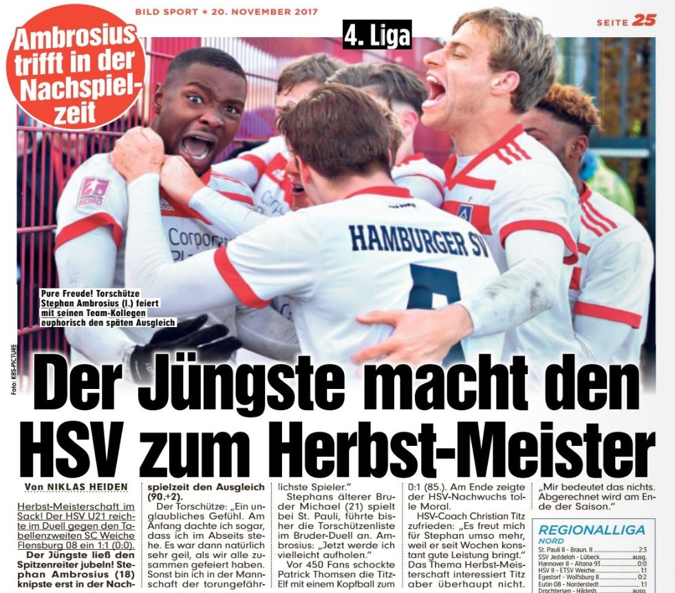 20.11.2017 (Artikel – Print): Der Jüngste macht den HSV zum Herbst-Meister