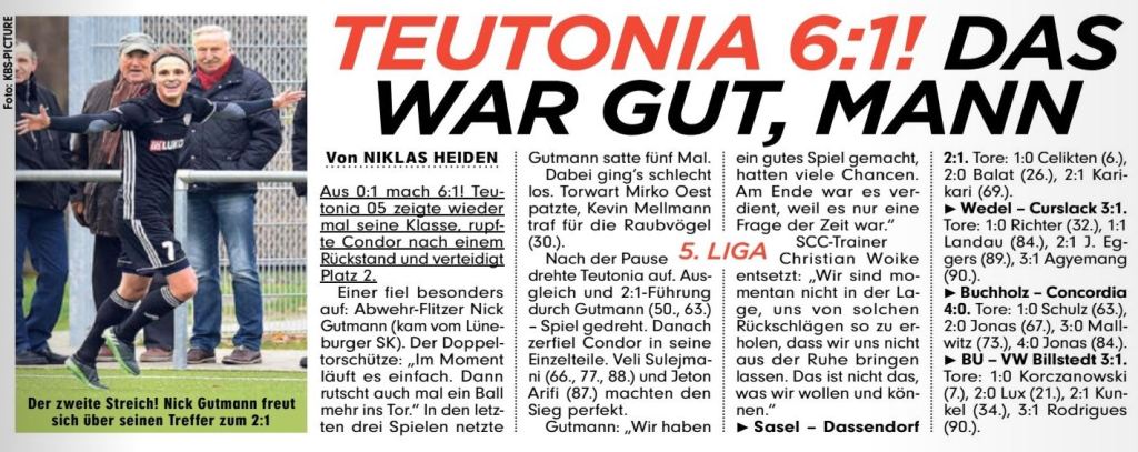 27.11.2017 (Artikel – Print): Teutonia 6:1! Das war Gut, Mann