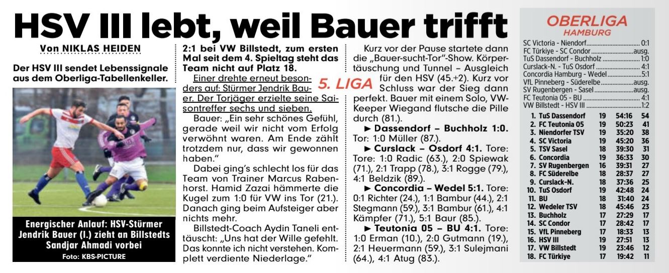 04.12.2017 (Artikel – Print): HSV III lebt, weil Bauer trifft