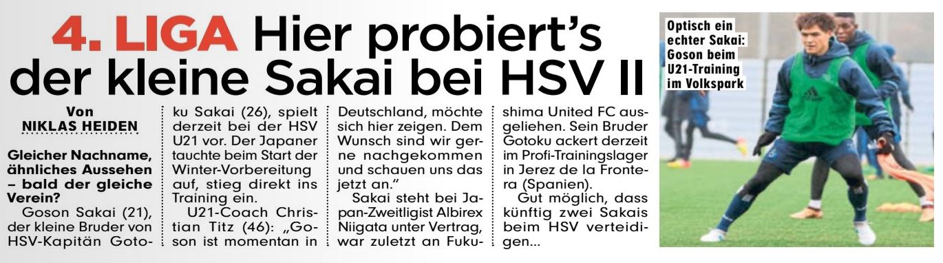 06.01.2018 (Artikel+Foto – Print): Hier probiert’s der kleine Sakai bei HSV II