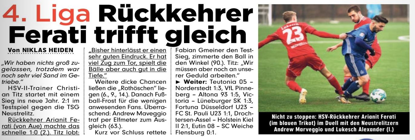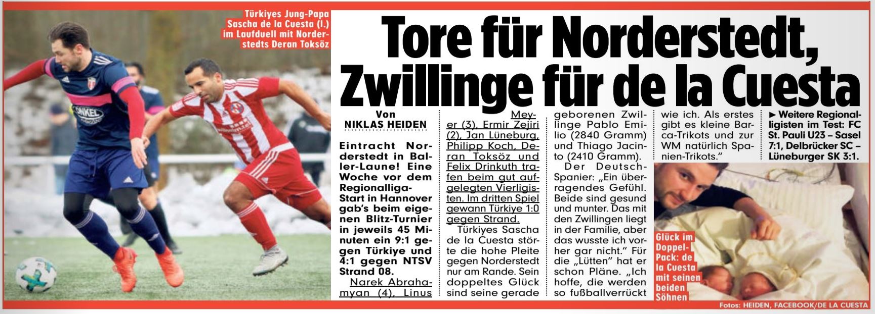 22.01.2018 (Artikel+Foto – Print): Tore für Norderstedt, Zwillinge für de la Cuesta