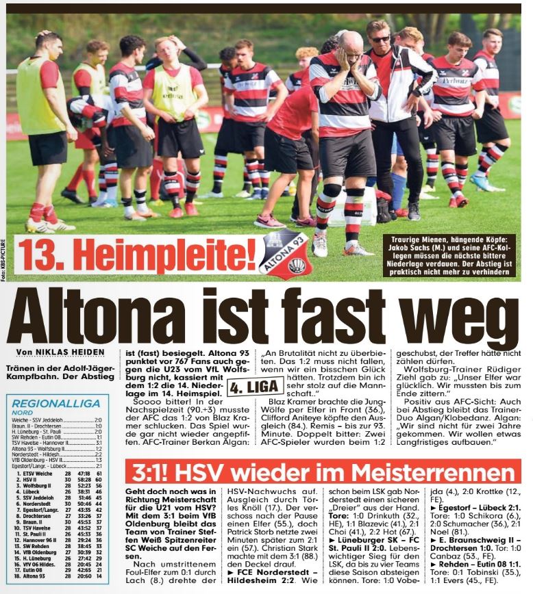 23.04.2018 (Artikel – Print): 13.Heimpleite! Altona ist fast weg