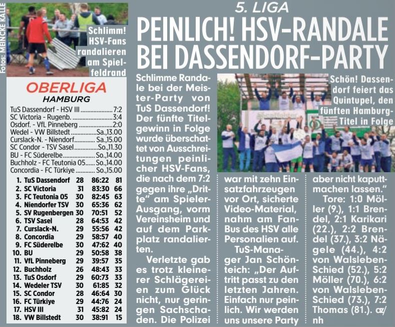 28.04.2018 (Artikel – Print): Peinlich! HSV-Randale bei Dassendorf-Party