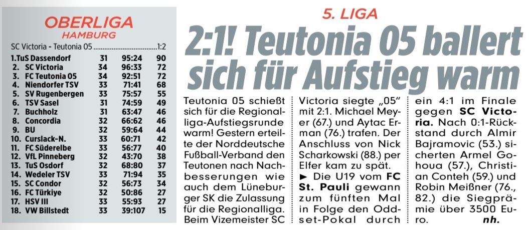 16.05.2018 (Artikel – Print): 2:1! Teutonia 05 ballert sich für Aufstieg warm