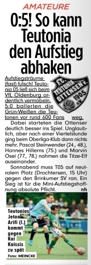 23.05.2018 (Artikel – Print): 0:5! So kann Teutonia den Aufstieg abhaken
