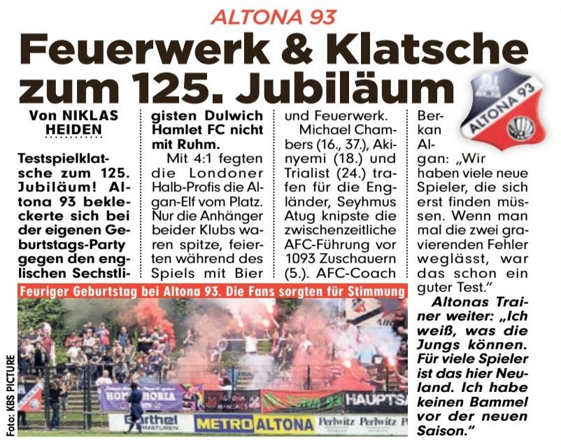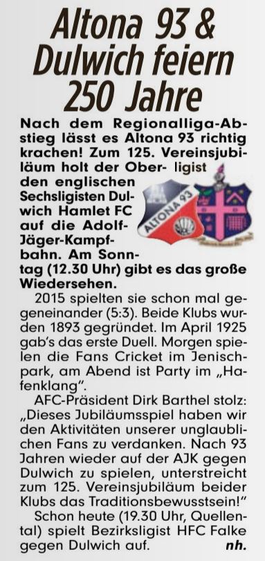 13.07.2018 (Artikel – Print): Altona 93 & Dulwich feiern 250 Jahre