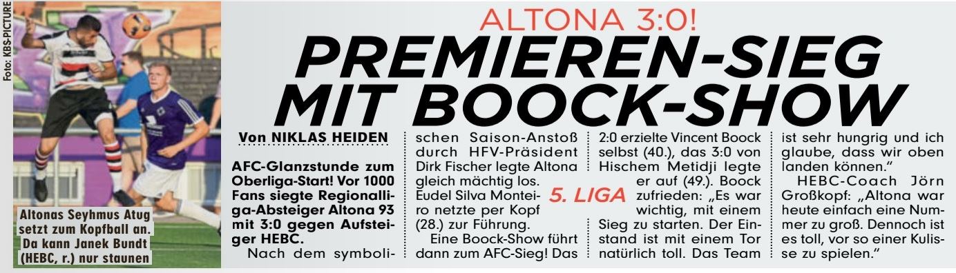 28.07.2018 (Artikel – Print): Premieren-Sieg mit Boock-Show