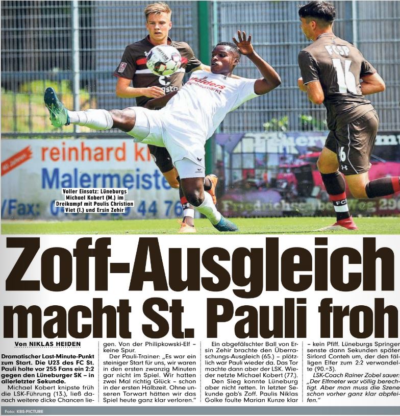30.07.2018 (Artikel – Print): Zoff-Ausgleich macht St. Pauli froh