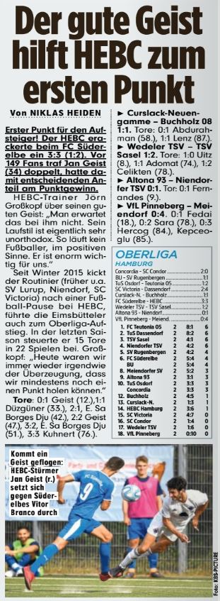 06.08.2018 (Artikel – Print): Der gute Geist hilft HEBC zum ersten Punkt
