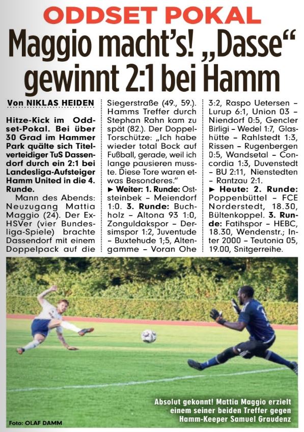 08.08.2ß18 (Artikel – Print): Maggio macht’s! „Dasse“ gewinnt 2:1 bei Hamm