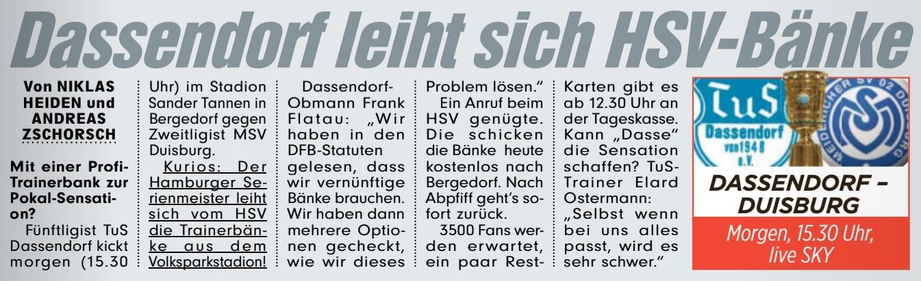 17.08.2018 (Artikel – Print): Dassendorf leiht sich HSV-Bänke