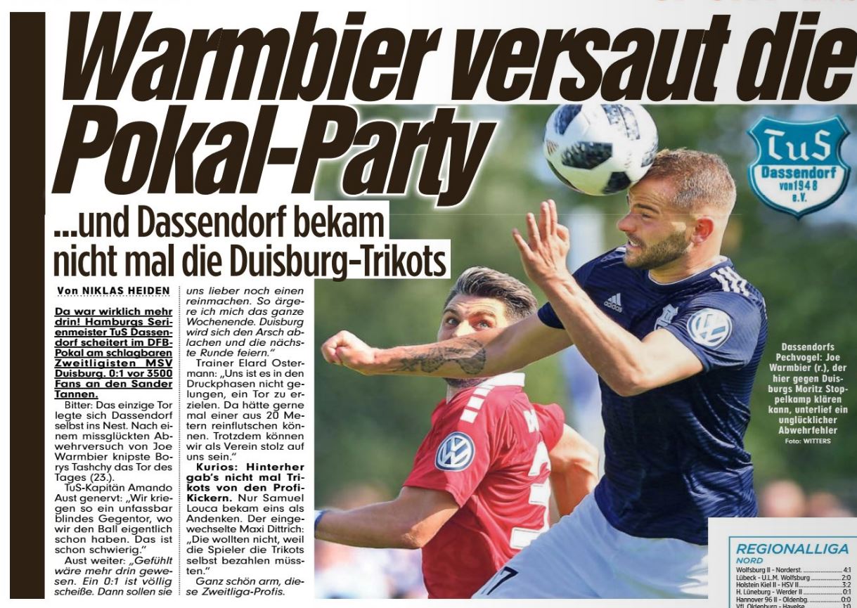 20.08.2018 (Artikel – Print): Warmbier versaut die Pokal-Party