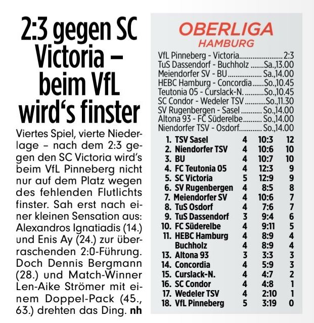 15.10.2018 (Artikel – Print): 0:7! Der böse Absturz des VfL Pinneberg