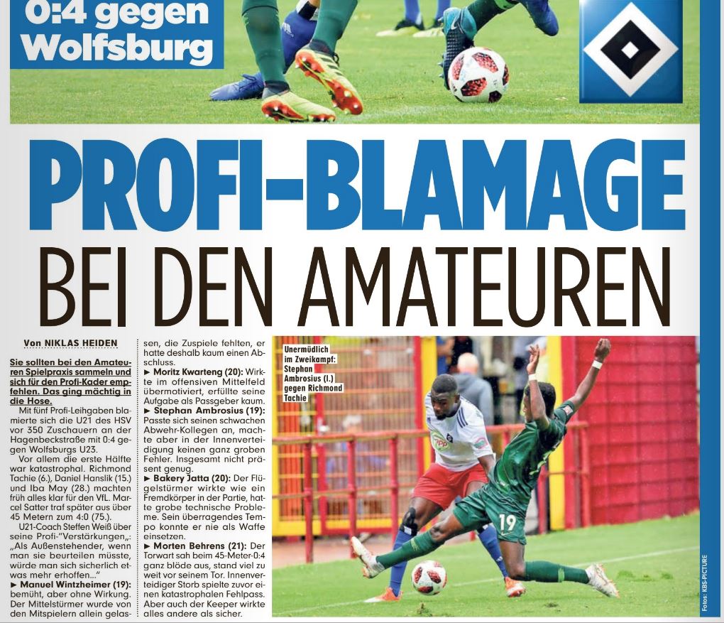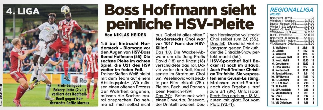 06.09.2018 (Artikel – Print): Boss Hoffmann sieht peinliche HSV-Pleite