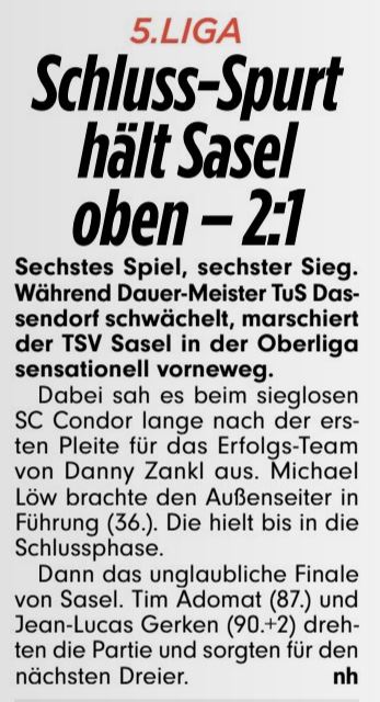 01.09.2018 (Artikel – Print): Schluss-Spurt hält Sasel oben – 2:1