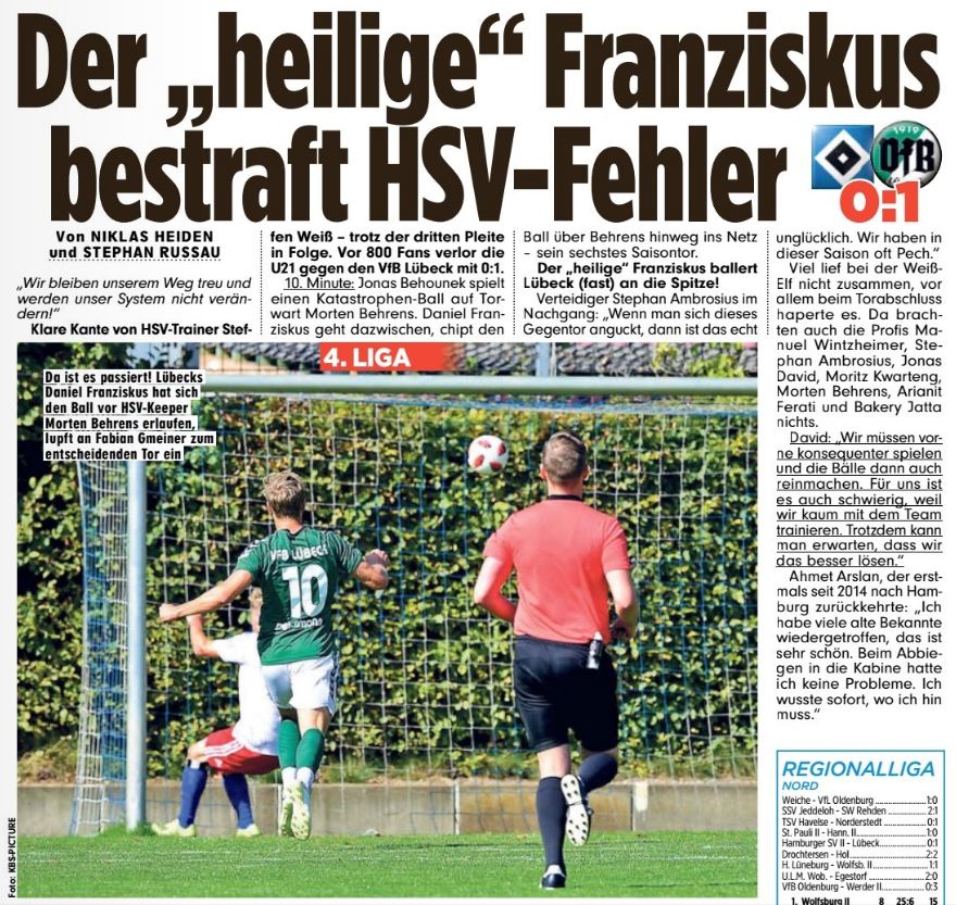 03.09.2018 (Artikel – Print): Der „heilige“ Franziskus bestraft HSV-Fehler