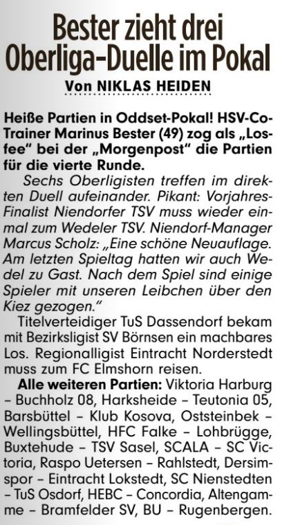 05.09.2018 (Artikel – Print): Bester zieht drei Oberliga-Duelle im Pokal