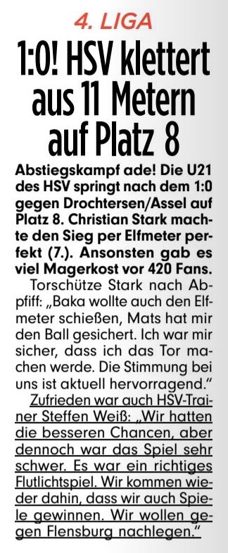 12.04.2018 (Artikel – Print): 0:2! HSV II vergeigt Spitzenduell in Flensburg