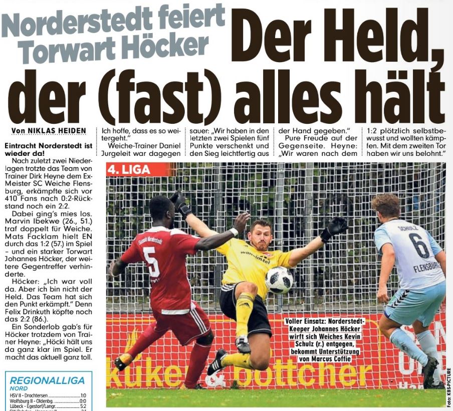 24.09.2018 (Artikel – Print): EN feiert Torwart Höcker – Der Held, der (fast) alles hält