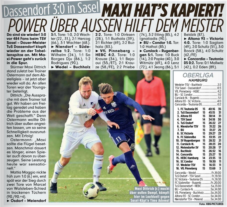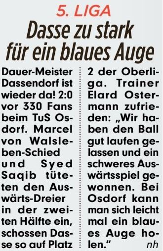 23.09.2017 (Artikel – Print): 2:1! „Dasse“ haut Teutonen weg