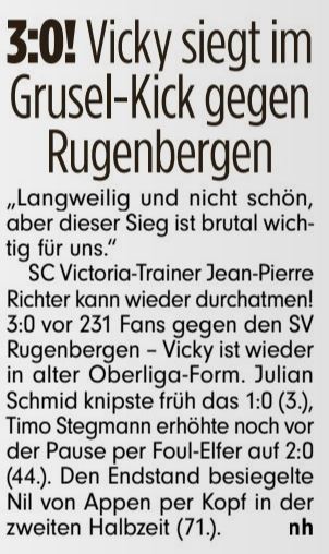 20.10.2018 (Artikel – Print): 3:0! Vicky siegt im Grusel-Kick gegen Rugenbergen